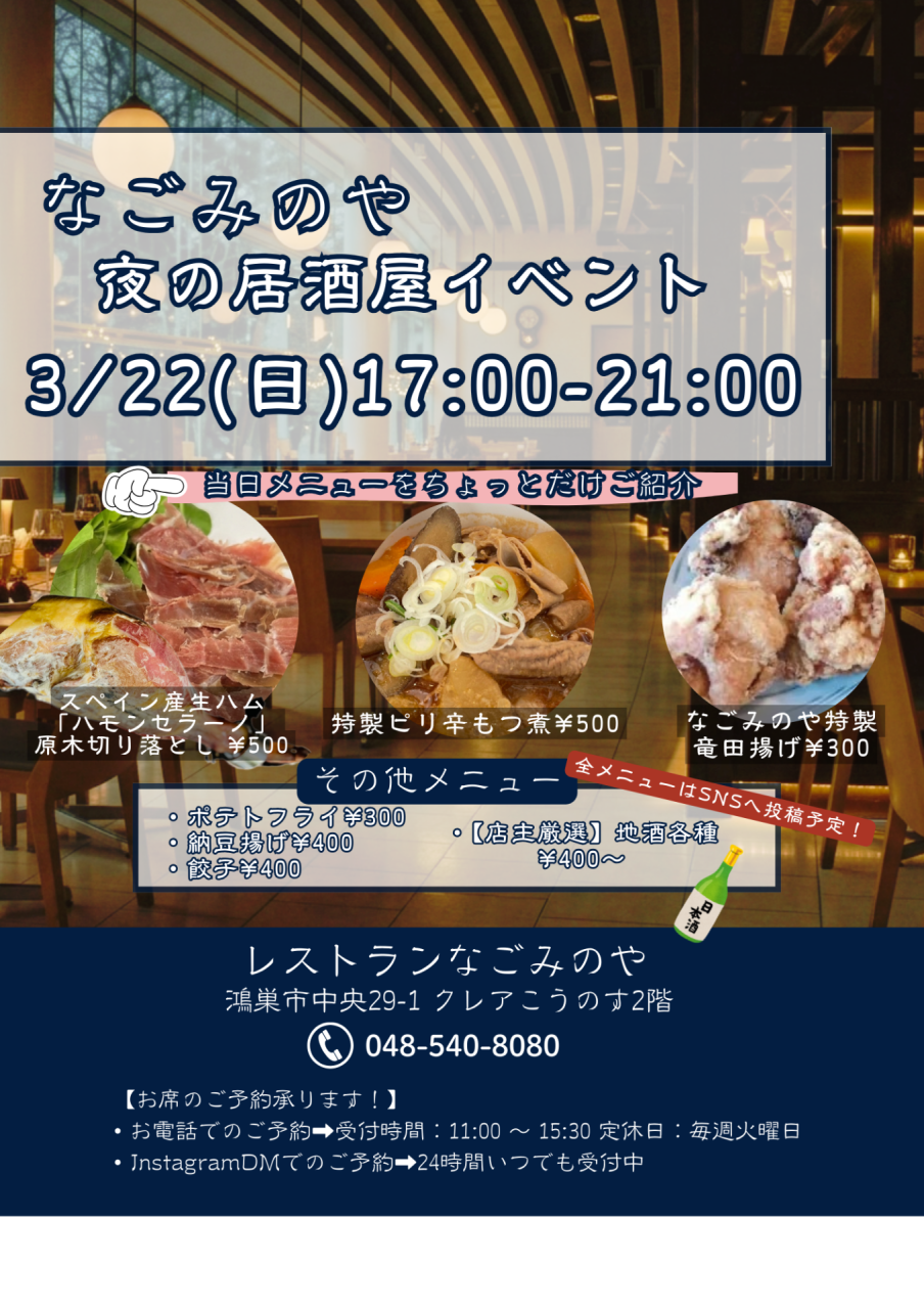 🗓 3/22(日)17:00〜21:00