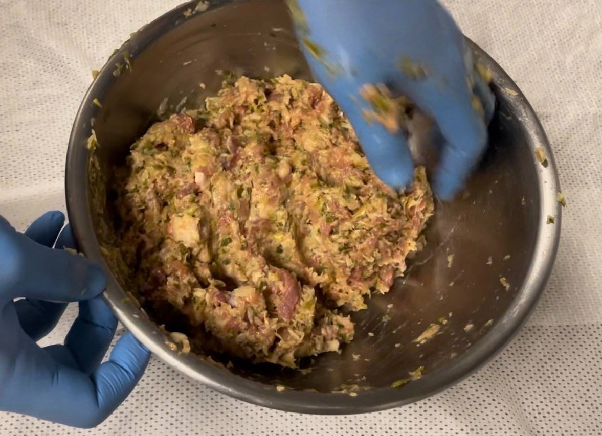 埼玉県産の豚肉のみを贅沢に使用。あえて一番味が濃いとされる「ウデ」部位をメインに使うことで、豚肉本来の力強いコクを実現しました。100%豚肉だからこその、満足感がありながらもヘルシーな味わいです。